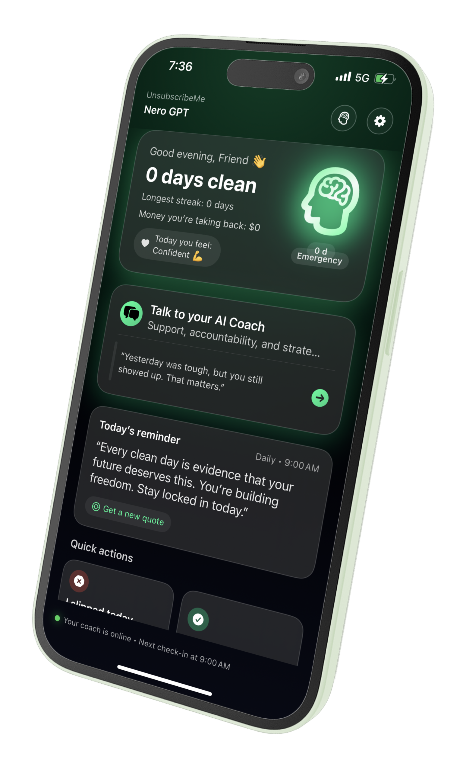 The AI Coach is like having a therapist in your pocket. Whenever I felt an urge, the 'Quick Actions' helped me stay locked in. It’s not just a tracker; it’s a complete system that rewired my mind and helped me reclaim my focus and self-esteem.