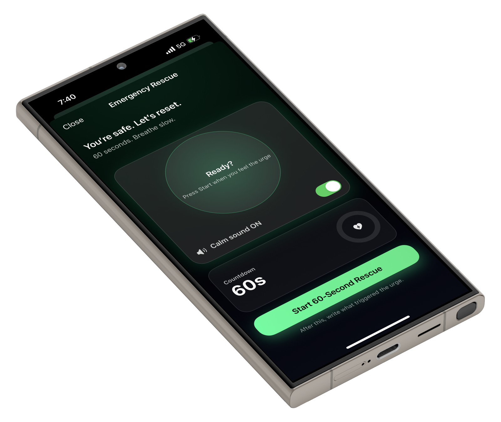 Feeling triggered or overwhelmed? Activate Emergency Rescue and reset your mind in just 60 seconds.
